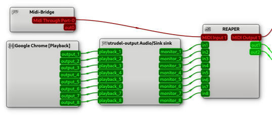 I tried creating a fake sink with pactl load-module module-null-sink media.class=Audio/Sink sink_name=strudel-output channels=8 assigned with pavucontrol, it looks like this: