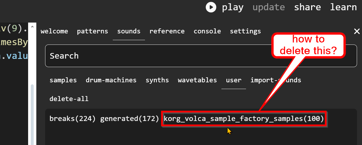 … if I don’t want to delete ALL samplepacks. (Yes, there is a “delete-all” option on the screen.)