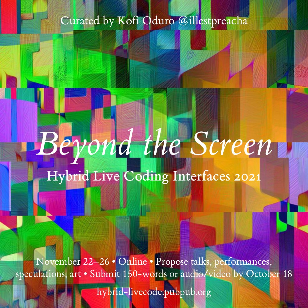 Submit by Oct 18, event online Nov 22–26: http://hybrid-livecode.pubpub.org/workshop2021