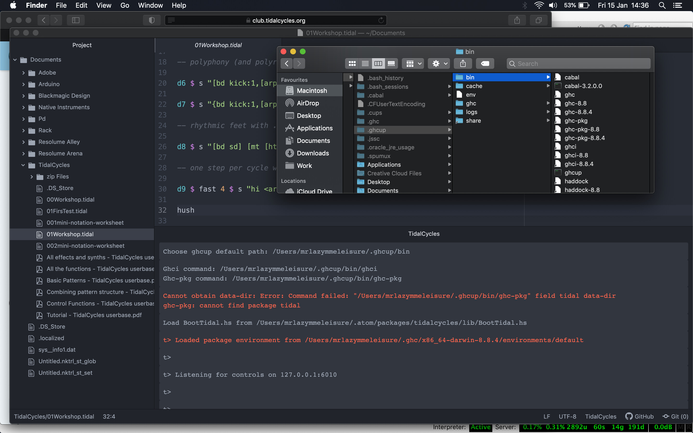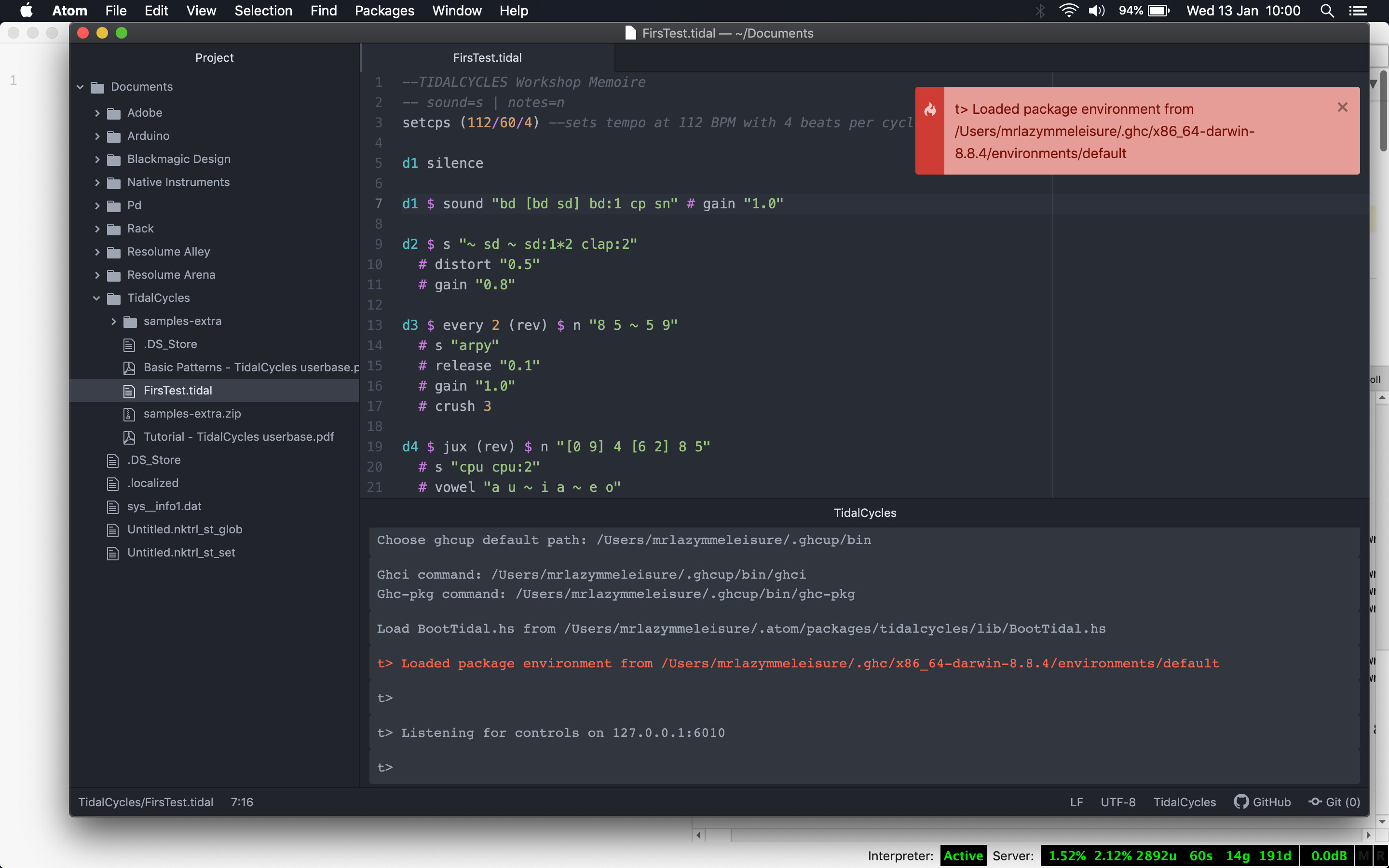 P.S.: I'm on the first week of the TidalCycles course and loving it