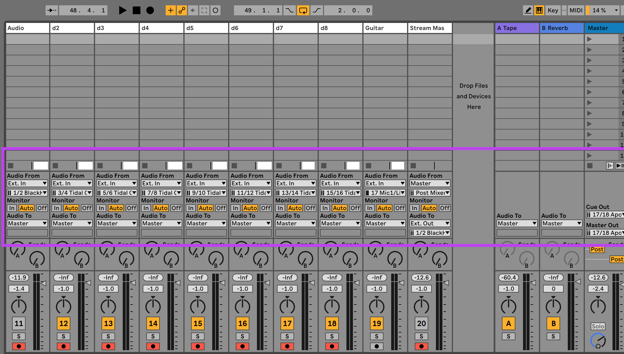 Again I have a couple of standard .tidal files I use as templates with the MIDI stuff already set up. Here is an example file of me doing a lot of MIDI stuff.