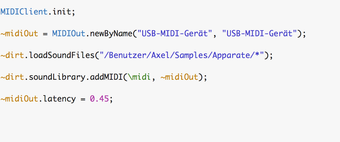 ~dirt.loadSoundFiles("/Users/wanninger/Samples/*");
